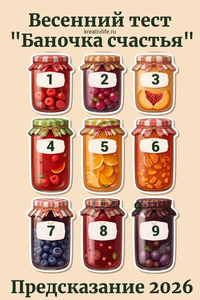 Инструкция: Выберите банку с вареньем или компотом, которая больше всего вам нравится. Эта банка расскажет о вашем прогнозе счастья на весну 2026 года.